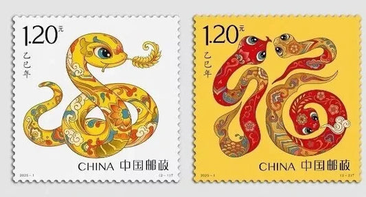CHINA PRC 2025-1 year of snake new year zodiac stamp set of 2pcs MNH 蛇年...