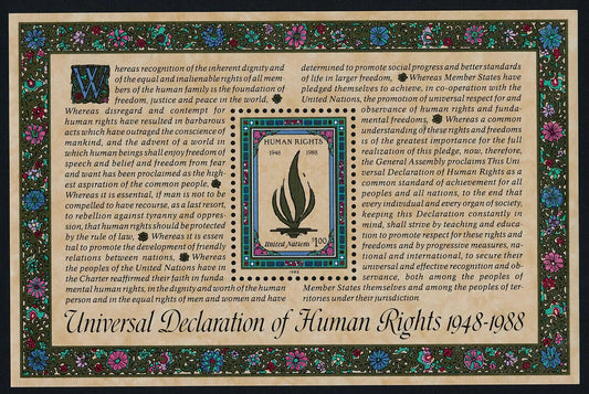 UNITED NATIONS - SC#545 1988 Declaration of Human Rights Souvenir Sheet - MNH    ...