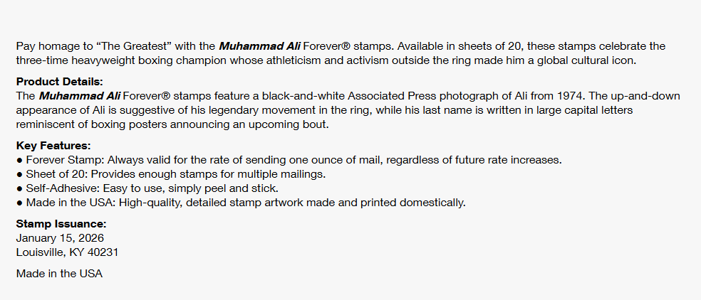 2026 US Stamps - SC#6050-6051 Muhammad Ali Forever Stamps - Sheet of 20 - MNH VF