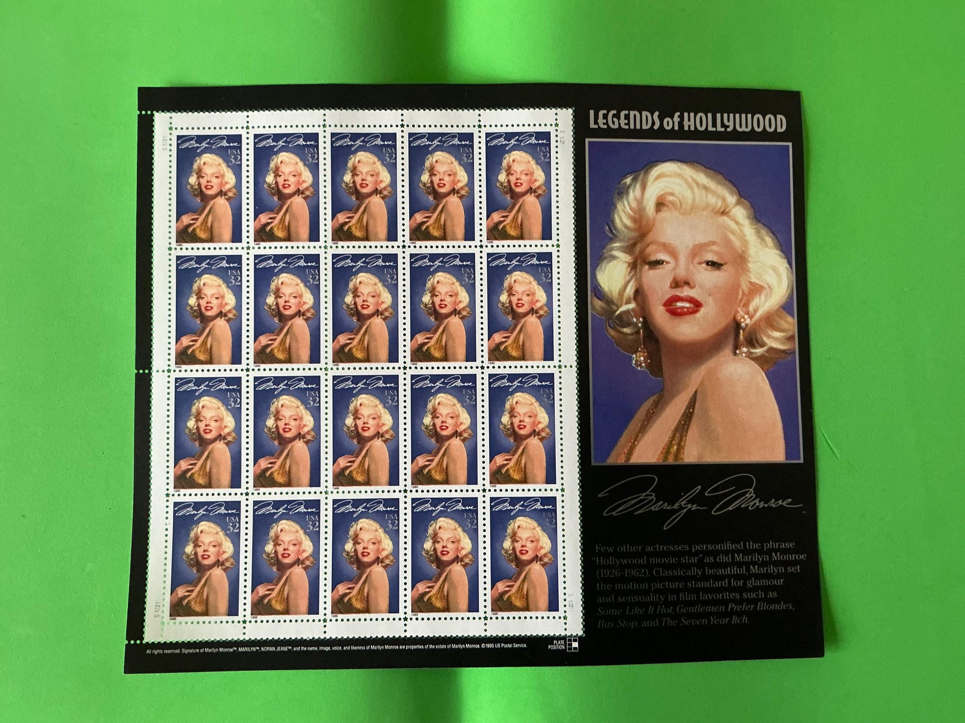 Antique stamps - US 1995 SC#2967 - Legends of Hollywood - Marilyn Monroe Stamps - Sheet of 20, 8, And Single - MNH