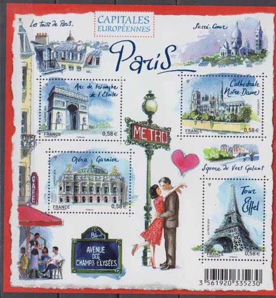 This is "One of the European Capitals Series" released by France in 2010. This is a miniature postage stamp for a lover's date in Paris, France. Very collectible.