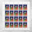 The stamp design depicts two children, a girl and a boy, standing together with a kinara (candleholder and the seven lit candles(mishumaa saba) in front of them. They are dressed in robes akin to spiritual garments. A light-blue circle behind the children'sheads represents wholeness and unifies the figures, and a mosaic motif frames the backqround.