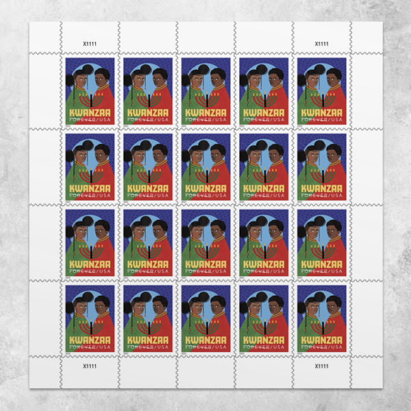 With this new stamp design, the U.S. Postal Service continues its tradition of celebrating Kwanzaa. The annual Pan-Africanholiday, which takes place over seven days from December 26 to January 1, brings family, community, and culture together formany African Americans.