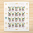 Utilizing red, pink, and purple as the predominant colors-said to be lucky colors for individuals born during the Year of the Rabbi-the rabbit mask in the stamp art incorporates elements with symbolic meaning. Several of the patterns were created with thestyle of Asian textiles in mind as well as green flowers that represent the arival of spring, which Lunar New Year also signals inChinese culture. The crescent shape in the center of the rabbit's head references the lunar calendar on which Lunar New Year isbased and the celestial themes of the Chinese zodiac