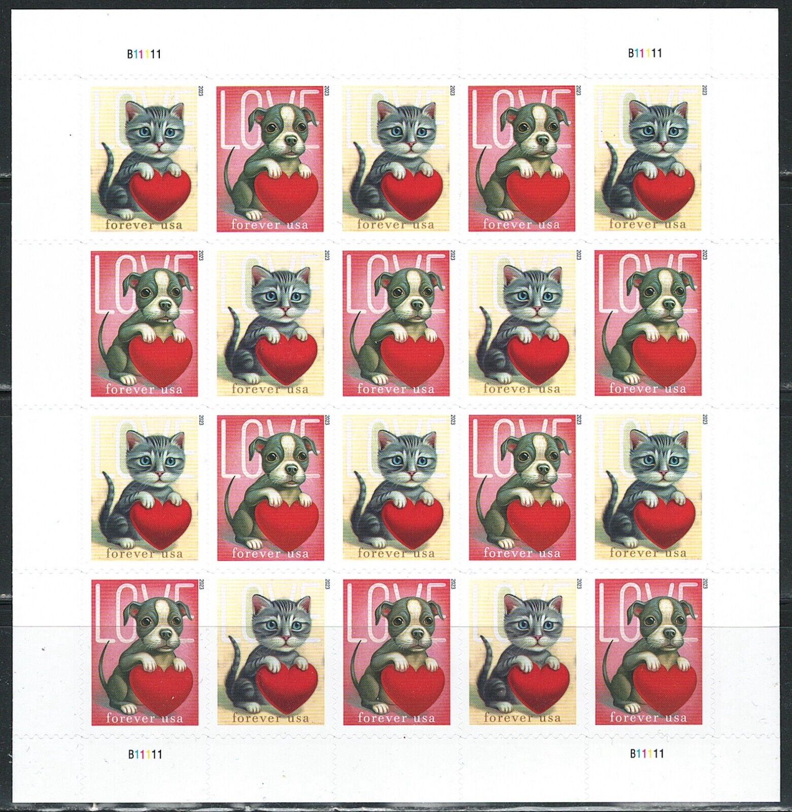 Mint US Love: Kitten & Puppy Pane of 20 Forever Stamps Scott# 5745-5746 (MNH)