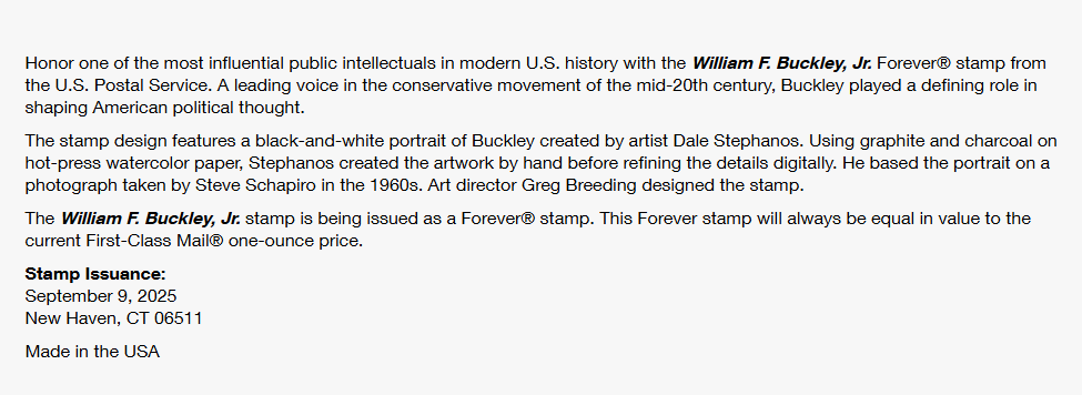 NEW ! US Stamps - 2025 SC#6032 - William F. Buckley Jr.Forever Stamps MNH