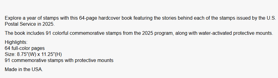 NEW ! US Stamps - 2025 US Stamp Yearbook - Set of 1 - Brand New