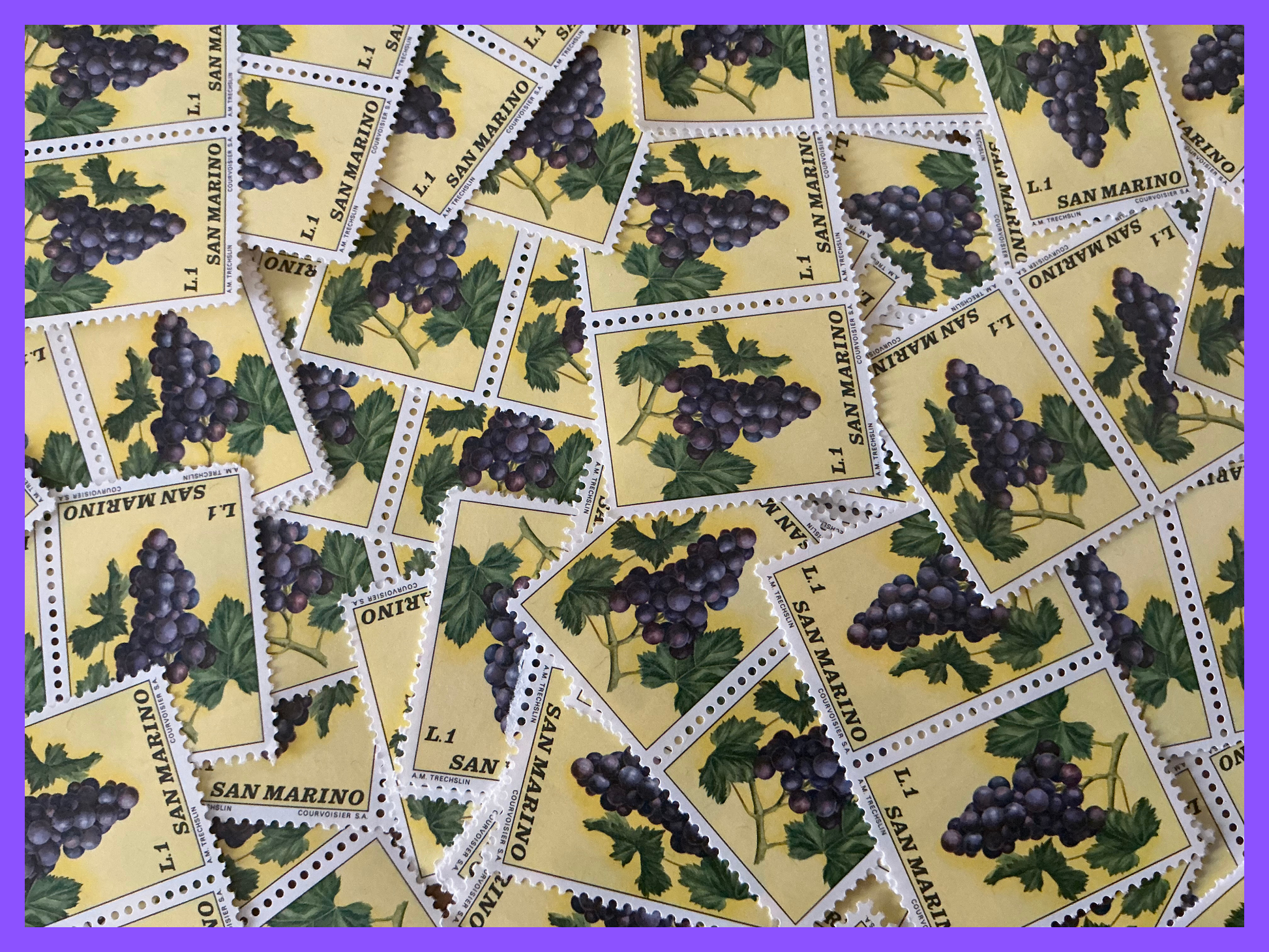 This is a superb philatelic offering of the elegant "Grapes" stamp from the 1973 Fruit series issued by the Republic of San Marino. The set celebrates the agricultural bounty of the region, and this particular stamp beautifully depicts a lush cluster of purple grapes on the vine.