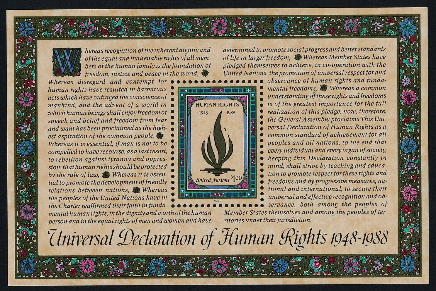 UNITED NATIONS - SC#545 1988 - Declaration of Human Rights Souvenir Sheet - MNH