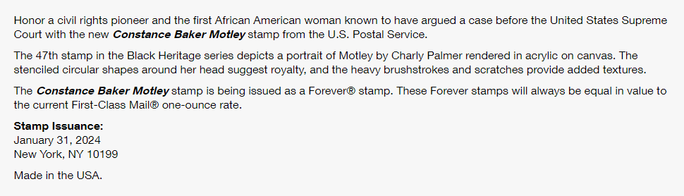 US 2024 SC#5830 Constance Baker Motley Stamps ( Sheet of 20 Stamps) Brand New VF MNH