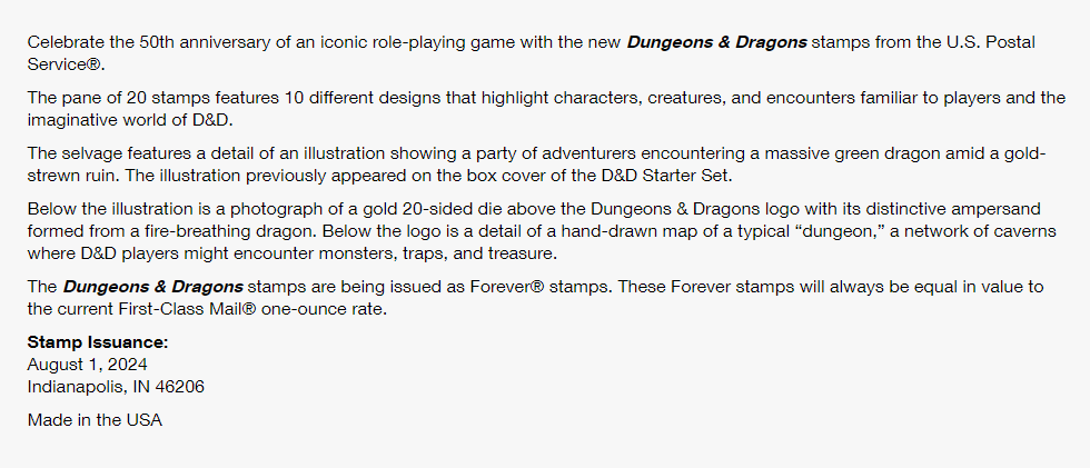 US 2024 SC#5909-5918 Dungeons & Dragons Forevers Stamps ( Sheet Of 20 Stamps ) MNH VF