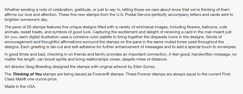 @ This is a set of Thinking of You forever Stamps sheets, including 20 stamps.