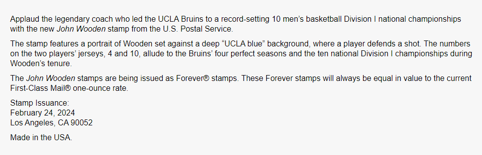 US Stamps 2024 SC#5833 John Wooden, Stamps (Sheet of 20 Stamps) VF MNH