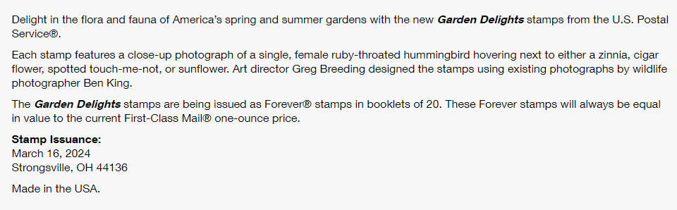 US Stamps 2024 SC#5845-5848 Garden Delights Stamps (Booklet/20) VF MNH